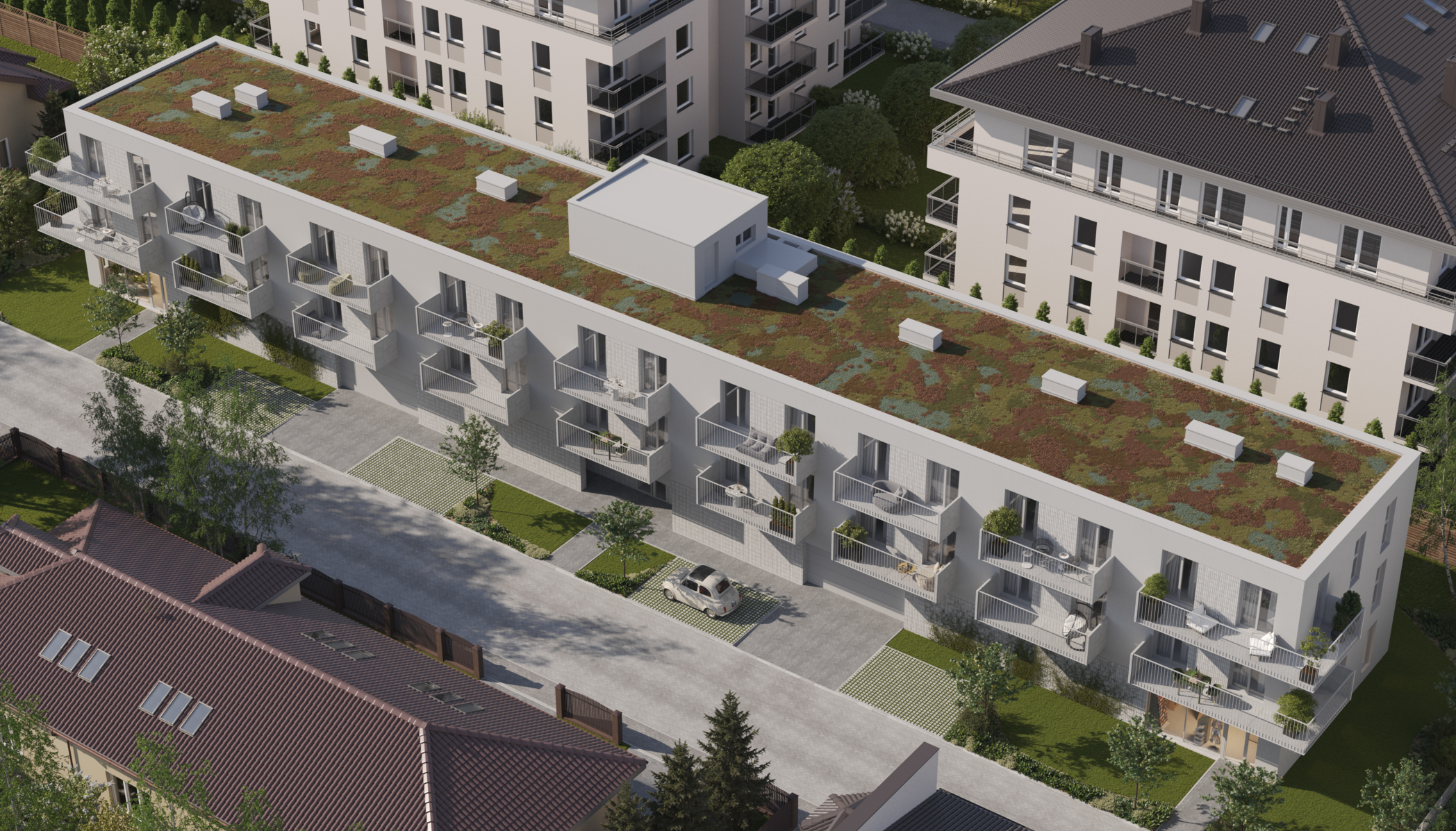 W budynku znajduje się 18 apartamentów o metrażach,od 40 m² do 55 m², w układach dwupokojowych oraz trzypokojowych. Wszystkie mieszkania dwupokojowe posiadają balkony o metrażu 6,7m2, a 4 narożne mieszkania trzypokojowe wyposażone są w narożne balkony mające 13,5m2. Na poziomie zero mieszczą się dwie naziemne hale garażowe z miejscami na 16 samochodów (w cenie 39000 pln za miejsce).